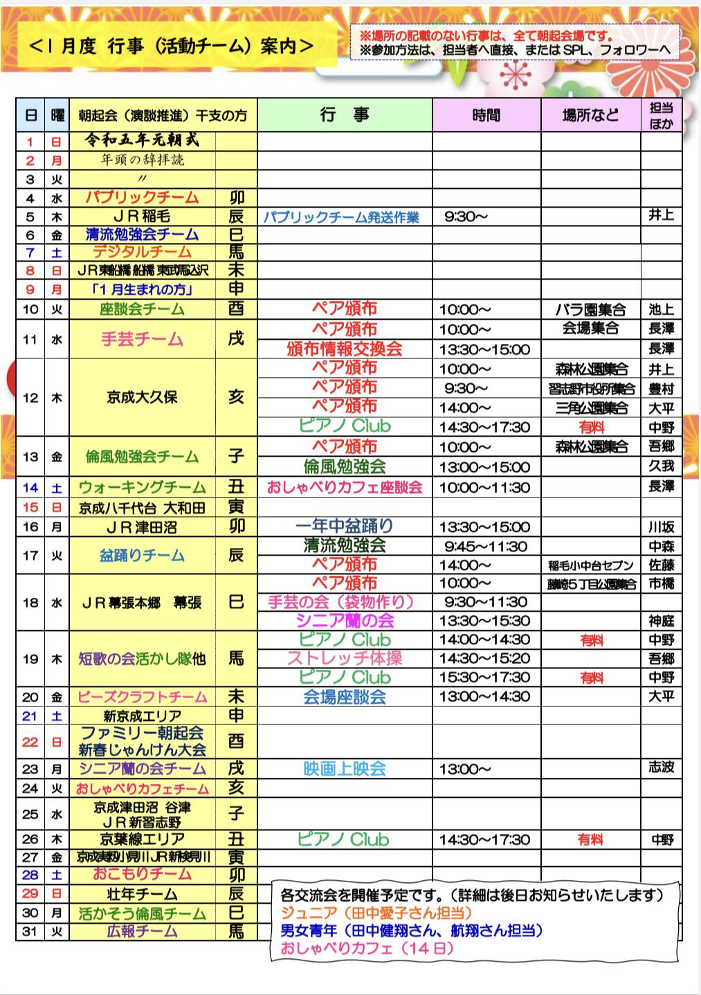 幕張ビルの二階朝起会場では毎日朝起会AM5:00~が行われています。